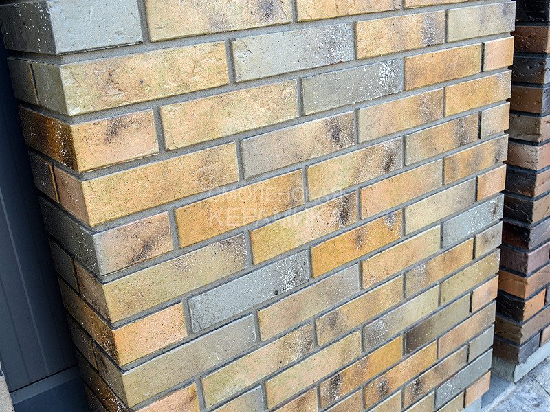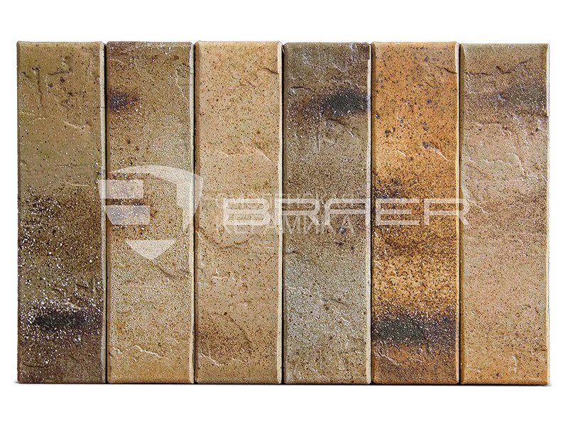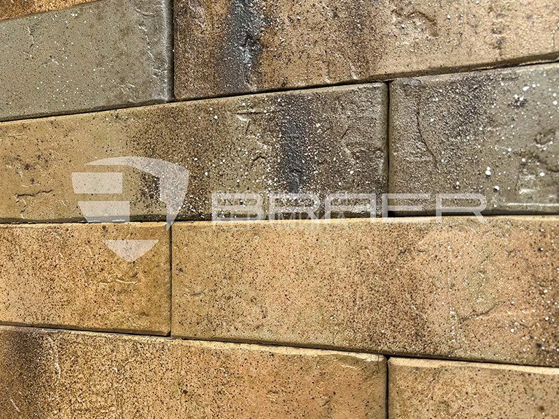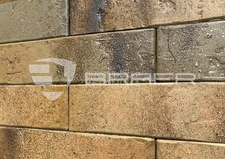 НОВИНКА! BRAER PRO 3.03 сочетает сложные цветовые переходы: от оливково-серого и тёмно-графитового до теплой терракоты. Поверхность кирпича матовая с глянцевыми элементами и характерными цветовыми вкраплениями. Аэрографы наносят суспензию из особой глины тонкого помола и органических пигментов на лицевые поверхности кирпича. Далее он отправляется под инфракрасный излучатель, а затем проходит стандартную процедуру обжига. В печи при t >1000 ˚С суспензия спекается с лицевыми гранями кирпича, образуя прочное покрытие. Количество циклов морозостойкости достигает 300 (при лабораторных испытаниях), что говорит о повышенных эксплуатационных характеристиках и долговечности изделий. Лицевая поверхность кирпича отталкивает влагу и не задерживает на своей поверхности пыль, так как поры лицевых граней изделия надёжно закрыты декоративным покрытием. BRAER PRO сохраняет свой цвет на протяжении всего срока эксплуатации.