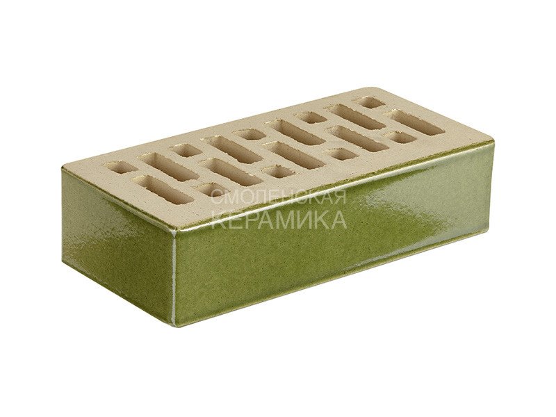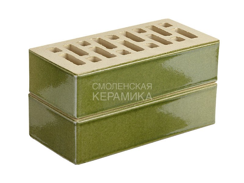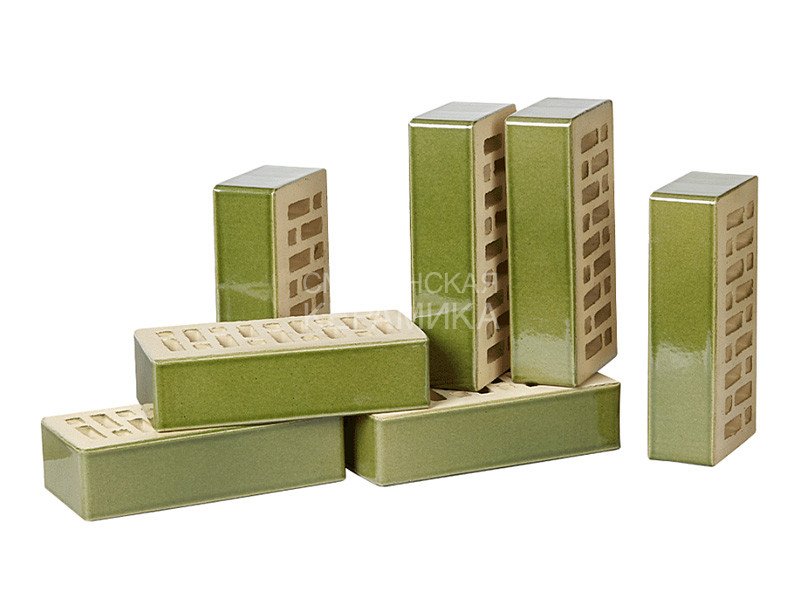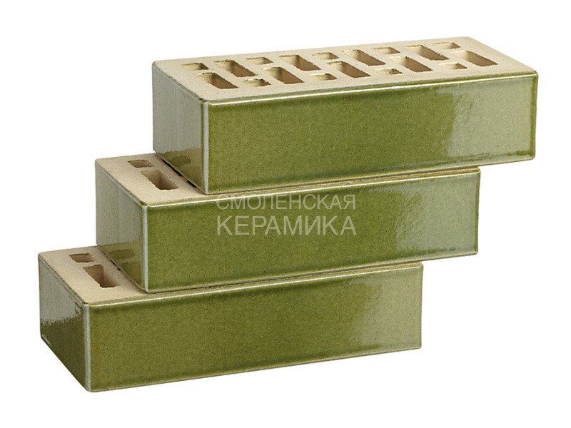 Кирпич 1-28-02-0-00 насыщенный травяной цвет с неравномерным нанесением глазури. Такой прием дает мягкий градиент и усиливает объем.