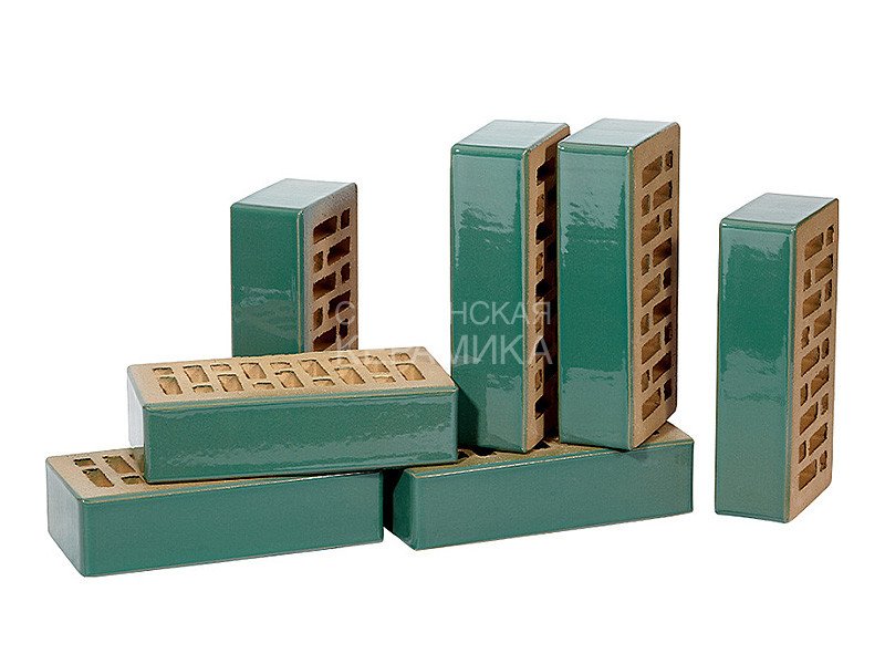 Глазурованный кирпич оттенка сочной зеленой травы отличается особенной гладкой поверхностью, которая создает ультрамодное оформление городской среды.